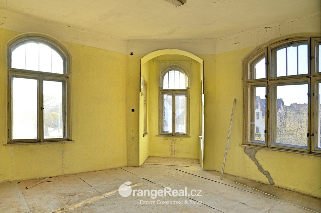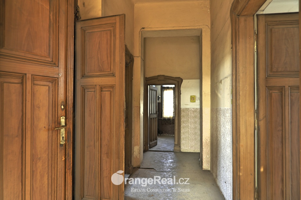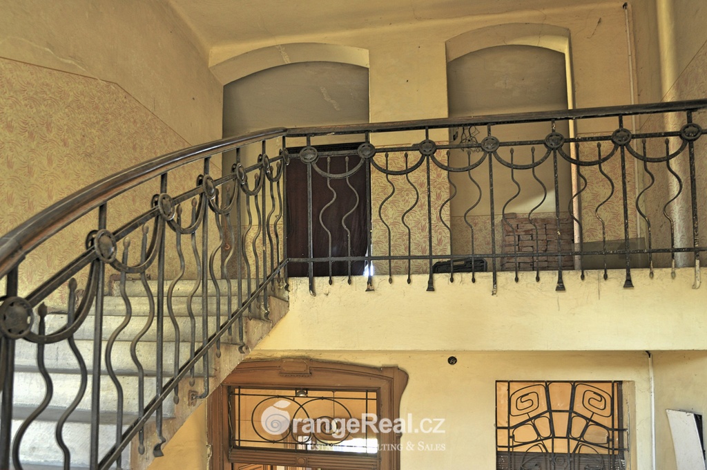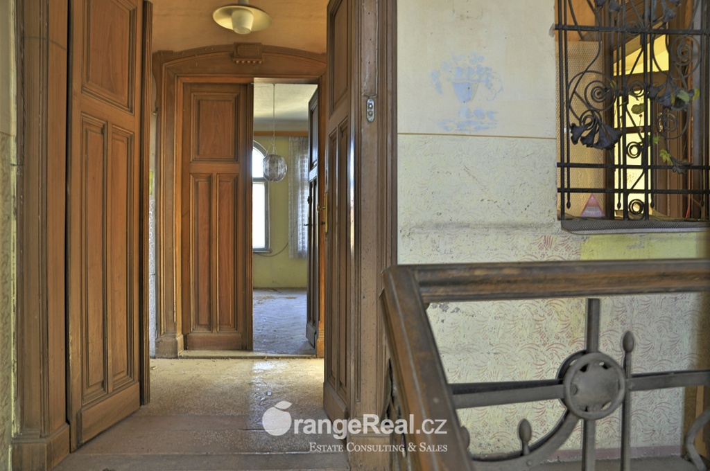 V zastoupení klienta nabízíme k prodeji unikátní pozdně secesní vilu v Pardubicích, umístěnou ve vilové čtvrti Bílého předměstí, na rohu ulic Sakařova a Wintrova. Vila byla dle dokumentace dokončena 31. 12. 1919 a je umístěna na pozemku o celkové výměře 1.043m2. Zastavěná plocha domu je 237m2, celkově tak vila nabízí 711m2 hrubé podlahové plochy ve třech nadzemních podlažích včetně půdy, dům je částečně podsklepen. Součástí zastavěného nádvoří je cca 40m2 plochy bývalé dvou garáže. Domu dominuje pískovcové točité schodiště, které dispozičně člení dům následovně: 1. PP sklep se sníženým stropem (umístěný plynový kotel), 1. NP zvýšené, samostatná bytová jednotka o cca 190m2 s dvěma přístupy na zahradu, 2. NP samostatná bytová jednotka o cca 190m2 s balkonem, 3. NP – velkorysá půda s potenciálem vybudování dalších obytných prostor. Dle zápisu v KN vila disponuje 6 bytovými jednotkami (podstatné pro budoucí kolaudaci a rekonstrukční souvislosti). Stavebním prvkem základů a podezdívky je kámen, zbytek konstrukce cihla, stropy dřevěné, okna původní dřevěná špaletová, schodiště pískovcové, krov dřevěný, střecha pálená taška. Dům je napojen na všechny sítě (voda, elektřina, kanalizace, plyn), je v původním stavu vyžadujícím rekonstrukci, která byla částečně započata.